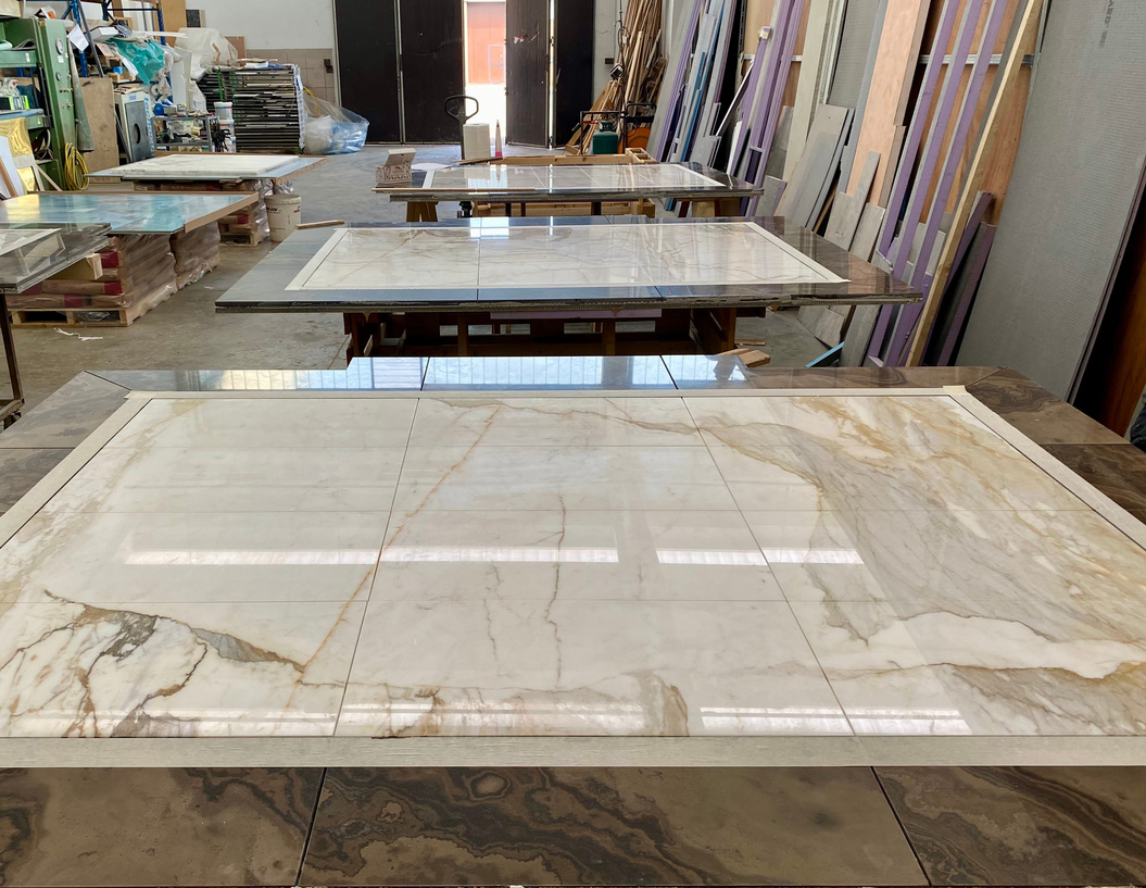 Con cura e precisione vengono riempite le fughe e ultimati i dettagli, così da rendere l'artigianalità italiana di Sarto ineccepibile.